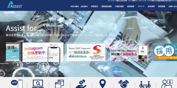 ホームページ制作,アプリ制作,ランディングページ制作なら株式会社アシストへ。制作実績20,000社以上の実績をベースにハイクオリティ×サービスをご提供。集客や求人活動を行う中小企業・店舗様を他社には追従できないサービスレベルで応援いたします。