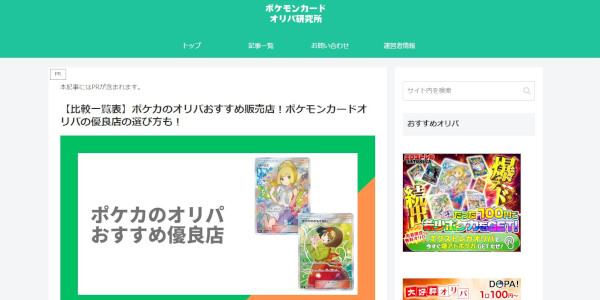 ポケモンカードのオリパ(オリジナルパック)のおすすめを調査するメディアです。すべて検証済みの安全にポケカのオリパを購入できるショップのみを掲載。低コストで爆アドレアカードが手に入る可能性があります。