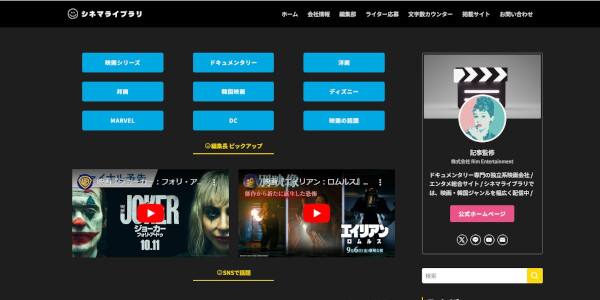 ドキュメンタリー専門の独立系映画会社「株式会社Rim Entertainment」が運営する映画メディア『シネマライブラリ』では、映画・韓国ジャンルを幅広く配信中です。
